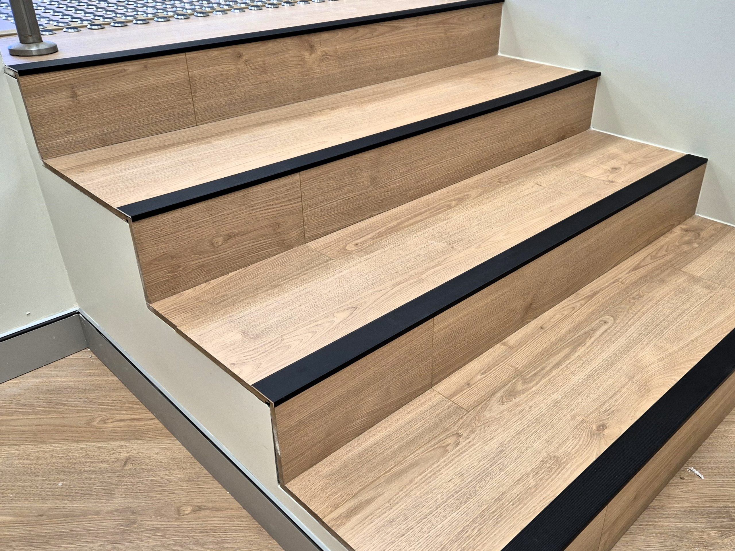 Elegant slimline Aluminium Ribbed design will lift the profile of any staircase. P5 highest slip rating. Cleartread quality aluminium stair nosings are specially designed manufactured with durable material which is ideal for use on exposed stair ways and high traffic areas. Used for airports, educational institutes, health care, shopping plazas and public domains, our wide range of nosings offer a solution for every requirement. All nosings have been tested to conform to current Australian Standards AS NZS 1428.4.1 and come with accredited certification.